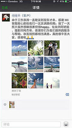 由于工作原因一直耽擱到現(xiàn)在才來,感謝365客服耐心的給我們一次次調換檔期,拍了一天照片雖然很曬很累但很happy,化妝師阿嬌姐攝影師阿杰哥,感謝你們?yōu)槲覀兲峁┑姆⻊张c幫助,妝面拍照都相當滿意,真的很幸苦大家,感謝啦